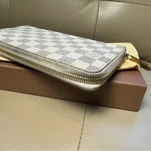 Authenticated Louis Vuitton Zippy Organizer featuring Damier Azur canvas.