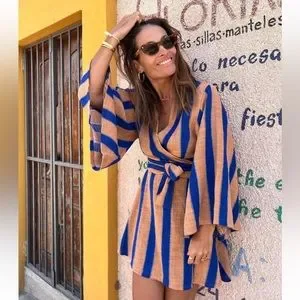 Gorgeous wrap dress with bell sleeves. 100% cotton.