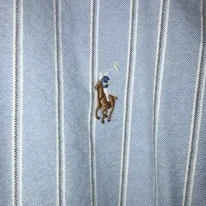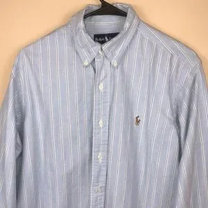 Ralph Lauren Men’s Classic Fit Light Blue White Black Pinstripe Button-Up Shirt
