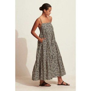Matteau Tiered Empire Tiered Maxi Dress Golden Primrose Ditsy Floral Size 8