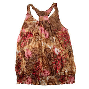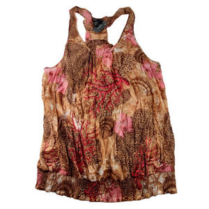 Lane Bryant Womens Tan Multi Print Silk Blend Sleeveless Racerback Tank 22