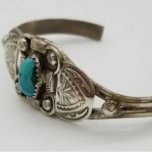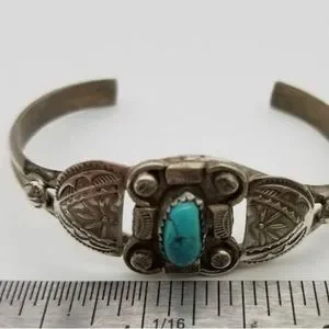 Rare, detailed antique turquoise cuff, for delicate wrist, see measurements