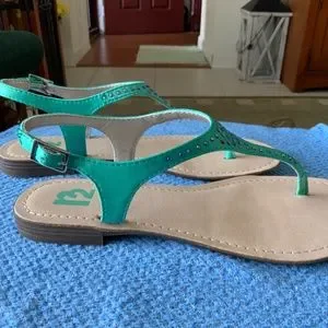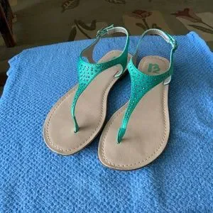 R2 Women’s Green Sandals with rhinestones, Size 7, like new.