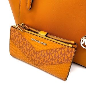Michael Kors Large Charlotte Tote Bag & Double Zip Wallet Wristlet Cider (NWT)