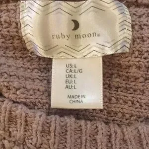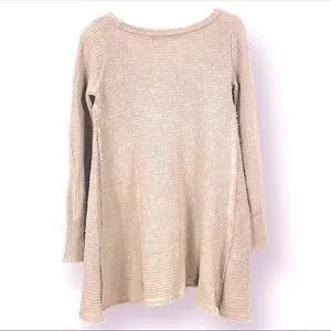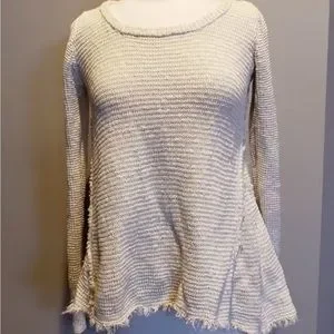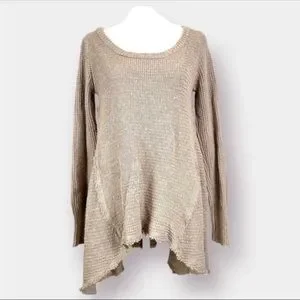 Ruby moon sweater. Pullover with a scoop neckline. Hi-low Waffle knit sweater. Side handkerchief gusset. Brand is sold at Anthropologie. Cream/stone color with some purple undertone. No rips or stains. Length: 24” in front & 25” in back. pit to pit: 18”. Ask questions.