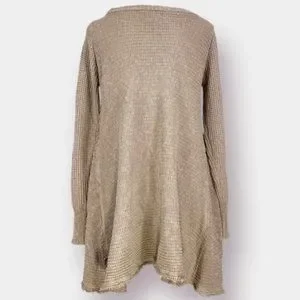Anthro Ruby Moon heathered oatmeal waffle knit shark bite raw hem longsl…