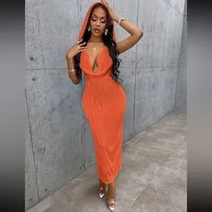 Burnt Orange Hooded Dress
