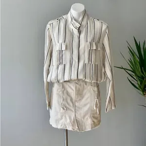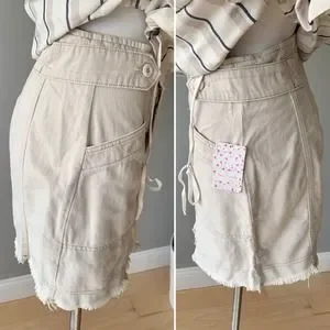 Free People Alpha Utility Raw-Edge Mini Skirt in Tan Size 8
