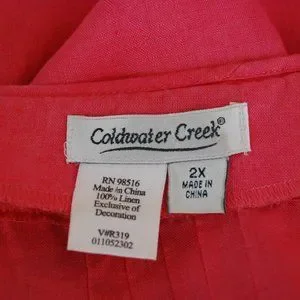 Coldwater Creek Pink 100% Linen Tunic Top Blouse Shirt Plus Size 2X