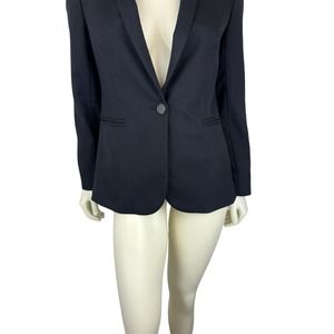 J. Crew Black Wool Flannel Parke Blazer Size 2 Womens Shawl Collar 1 Button