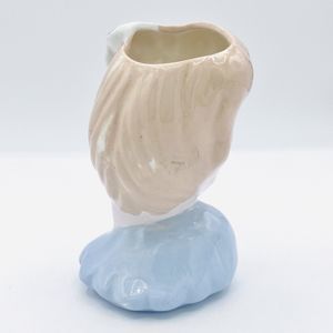 Vintage 50's Glamour Girl Lady Head Vase Blue W/ Gold Gilt Flowers Planter. Flaw