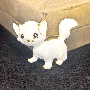 White Kitten Cat Brooch Enameled