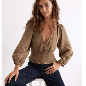 NWT Madewell Lightspun Julianne Smocked-Waist Top size L