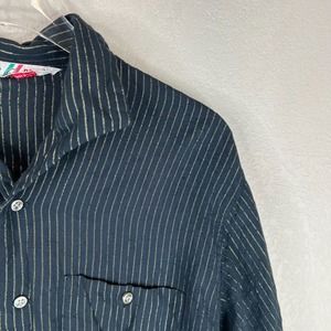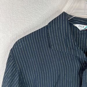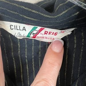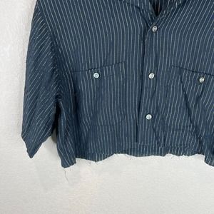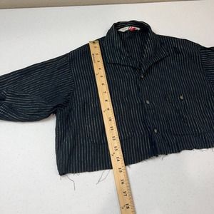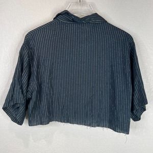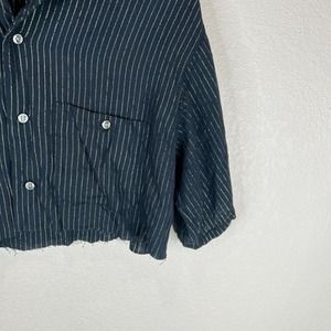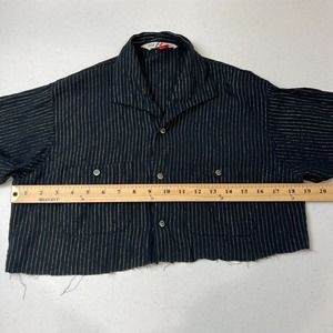 R by Reis Crop Top Size Medium Navy Striped Short Sleeve Distressed Boxy Vintage