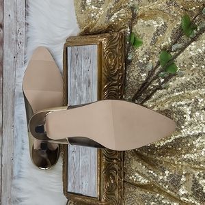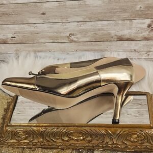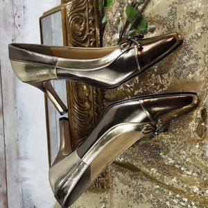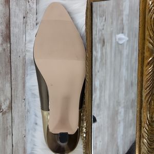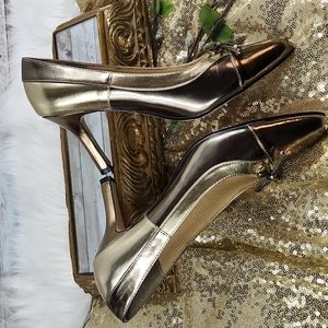 NWOT, Annie, Tri-color pumps, gold, pewter and bronze, 3 inch heels, never worn, super cute, size 7M.