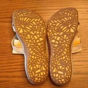 Merrell brand Zinnia Silver Lining style sandal in flax! Very good condition, only worn prob 2x. Great brand for a great price. Colors are flax, yellow, marigolds/zinnia. Nice sturdy bottom. Women's size 8