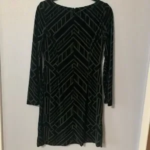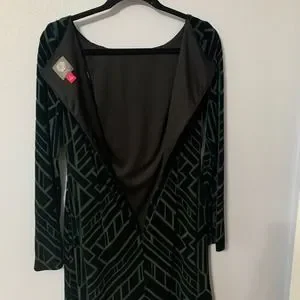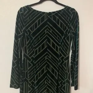 Vince Camuto Dress Emerald Green Burnout Velvet Geometric Sz 6. In excellent pre-owned condition. See photos for details on condition and measurements.
