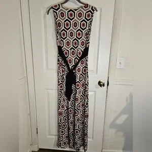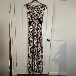 Pre-Owned. Minor Wear. Good Condition. Gorgeous Maxi Dress. Black, Red, White Geometric Patterned Dress. Sleeveless.