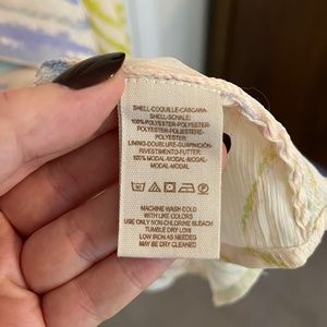 Machine wash cold with like colors. Use only non-chlorine bleach. Tumble dry low. Low iron as needed. May be dry cleaned.