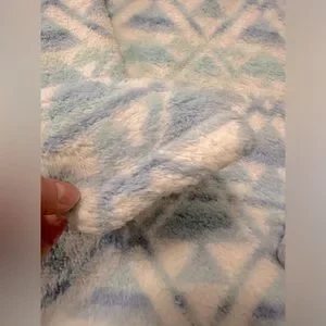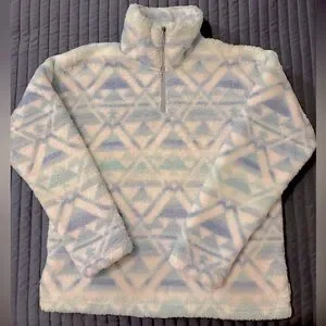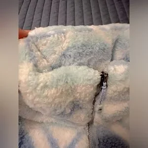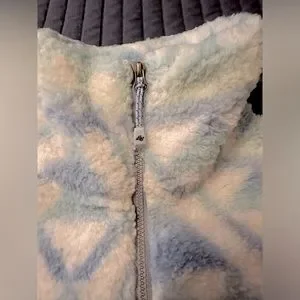 This fleece is in very good condition, it has been worn twice. The Sherpa is still fluffy with any slight signs of wear pictured in the collar and edge of sleeve.