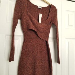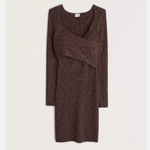 Long-Sleeve Wrap-Front Mini Sweater Dress - Brown (SP) - ABERCROMBIE & FITCH