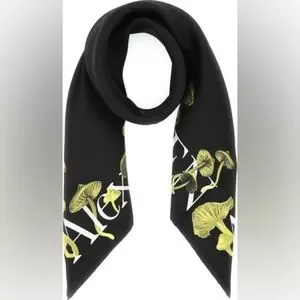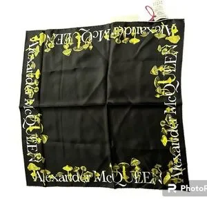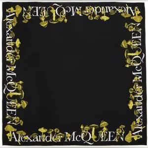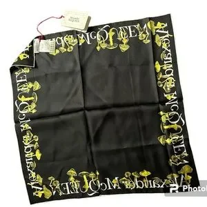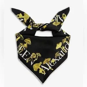 NWT 🍄 Alexander McQueen black mushroom silk square twill scarf
