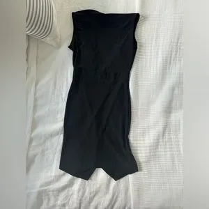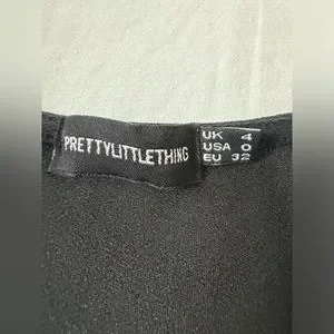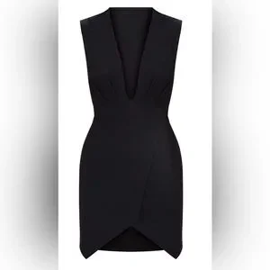 PrettyLittleThing Black Plunge Pointy Hem Wrap Bodycon Dress - size 0 (XS)