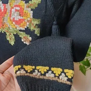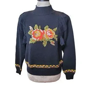 RARE | René Derhy Vintage 90s Embroidered Flower Wool Blend Sweater (Size M)