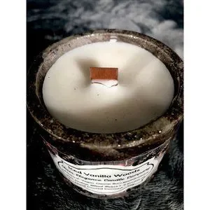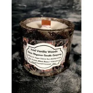 Add a touch of traditional style to your home with this handmade scented candle featuring a refreshing iced vanilla woods scent. The candle comes in a small round concrete vessel with a brown wood finish, making it suitable for any room in your home, including the bathroom, kitchen, bedroom, living room, sunroom, guestroom, and dining room. This one-of-a-kind candle is hand-poured and burns for 3-4 hours, providing a relaxing and inviting atmosphere in your space. The handmade candle is made in the United States and features a nature theme, making it a great addition to any home decor.