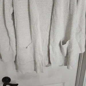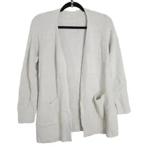 Fat Face Cardigan Sweater Womens 8 White Long Sleeve Pockets Open Front Knit