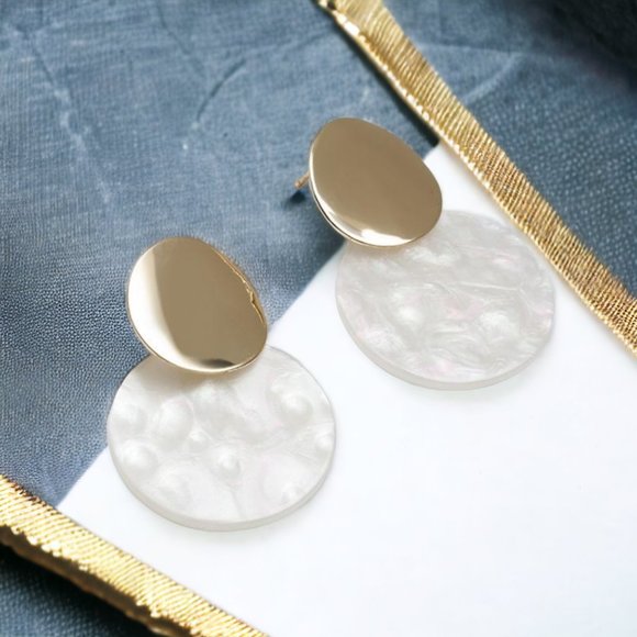 Complete your look with this beautiful earrings! The minimalist circle design with a gold and white nacre finish adds a dazzling, yet subtle touch, making them perfect for any occasion. Feel confident and stylish as you effortlessly elevate your style!