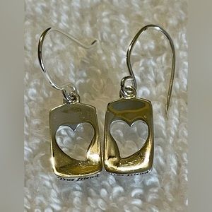 Sterling Silver True Friends Cut Out Heart 925 Dangle Hook Earrings never worn but there are some surface scratches as shown.