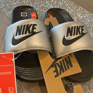 Nike Victori One Women's y2k Slides in black / silver metallic NWT size 8