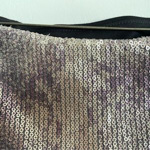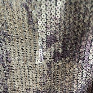 Beautiful dress with sequins and side zip. A few flaws but overall not noticeable and doesn’t detract from the piece—see pictures for more details. There are a couple of missing sequins and the sequins at the top are a little off. The back of the dress has a few tiny holes near the seam but while it is clear in the pictures in the light, it is not noticeable when worn. Beautiful with lining.