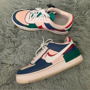Women’s 9 NIKE Air Force 1 Low Shadow Mystic Navy Pink Red Green Sneakers