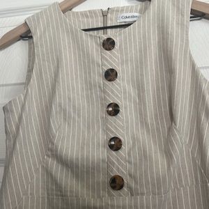 Calvin Klein Beige Striped Button Detail Sheath Dress