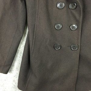 New York Co Peacoat 10 Wool Blend Double Breasted Coat Solid Brown Notch Pockets