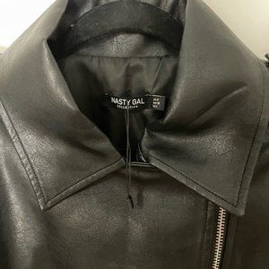 Nasty Gal Faux Leather Biker Jacket Black With Belt Size 4 NWOT