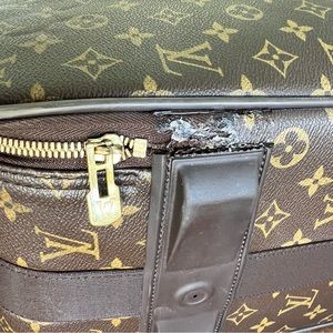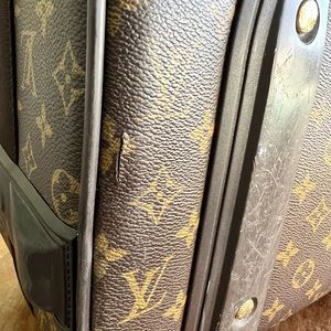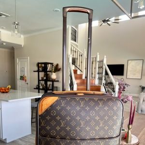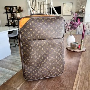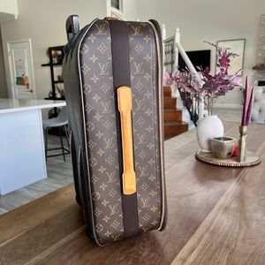 Beautiful, vintage piece of luxury! Louis Vuitton pegase 55 carry-on 2-wheel suitcase. Front has a full open pocket and small zipper pocket very clean. This is vintage/20 years old so it will have wear as shown in photos. **You could always send in to Louis Vuitton to fix flaws** no dustbag or box. Price accounts for additional shipping that I will have to purchase on my end due to size and weight.
