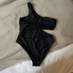 Red Carter Black One Piece Swimsuit one shoulder asymmetrical size L