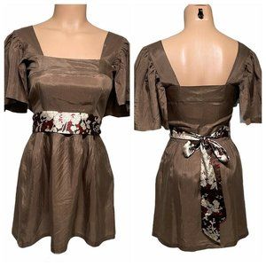 Miss Me 100% Silk Blouse sz Sm Womens Babydoll Top Flutter Sleeve Floral Waist