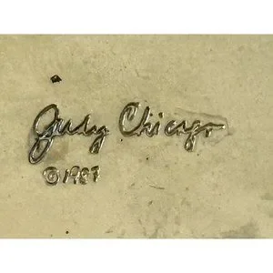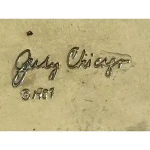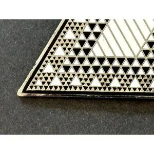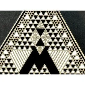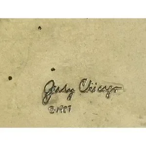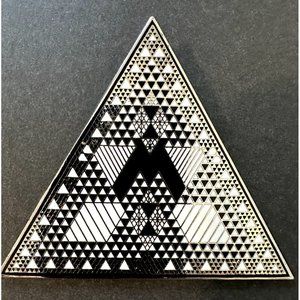 Judy Chicago 1987 triangle Holocaust Project brooch pin signed black white ename