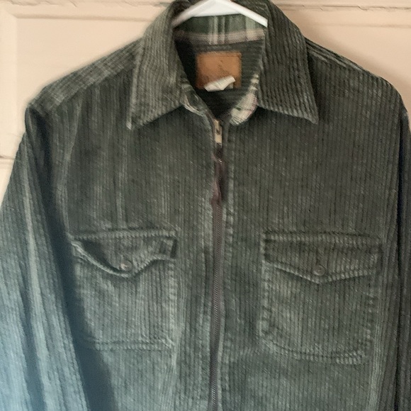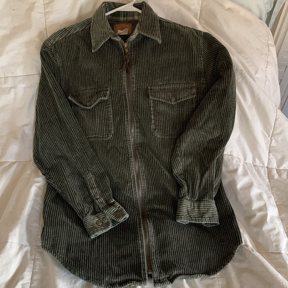 This is a great casual corduroy zipper shirt jacket. Women size medium in an earthy olive green.
