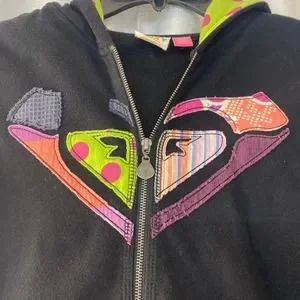 Roxy Appliquéd Hoodie black zip lined women sz M