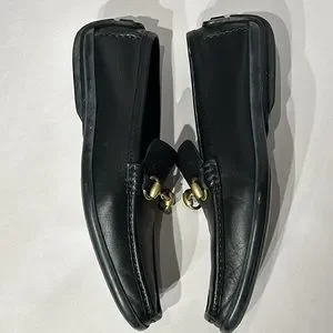 Black leather loafer/moccasin shoes