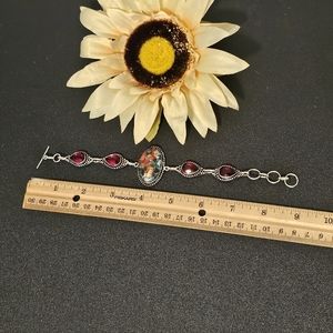 New - Spiny Oyster Turquoise / Garnet Bracelet. Styled in Sterling Silver 925. T-bar closure ( Length 7" - 9" )
