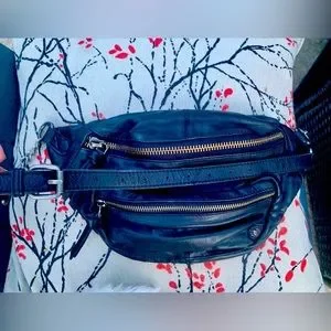 SOLD OUT- Black leather Free People Archer Sling Bag. Straps adjustable for shoulder sling or as belt.