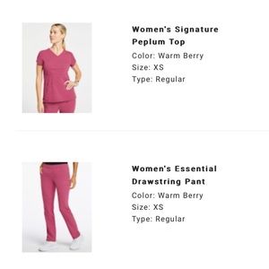 Size XS, color warm berry, top is peplum style, standard drawstring bottoms, excellent condition!