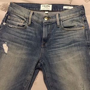 Frame Le Boy Jeans. Distressed, Raw Hem, Size 24 in Klinedale Wash