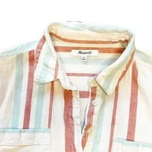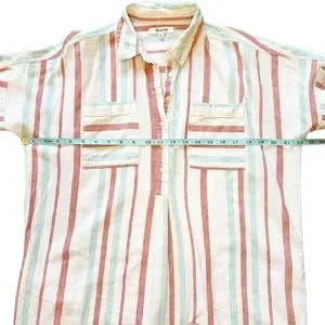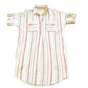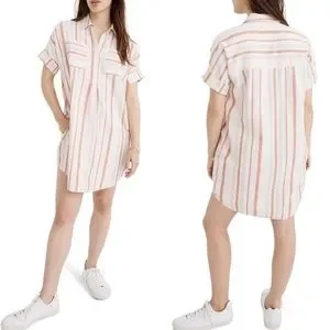 Madewell Courier Stripe Linen Cotton cream multicolor shirt dress Popover Medium
